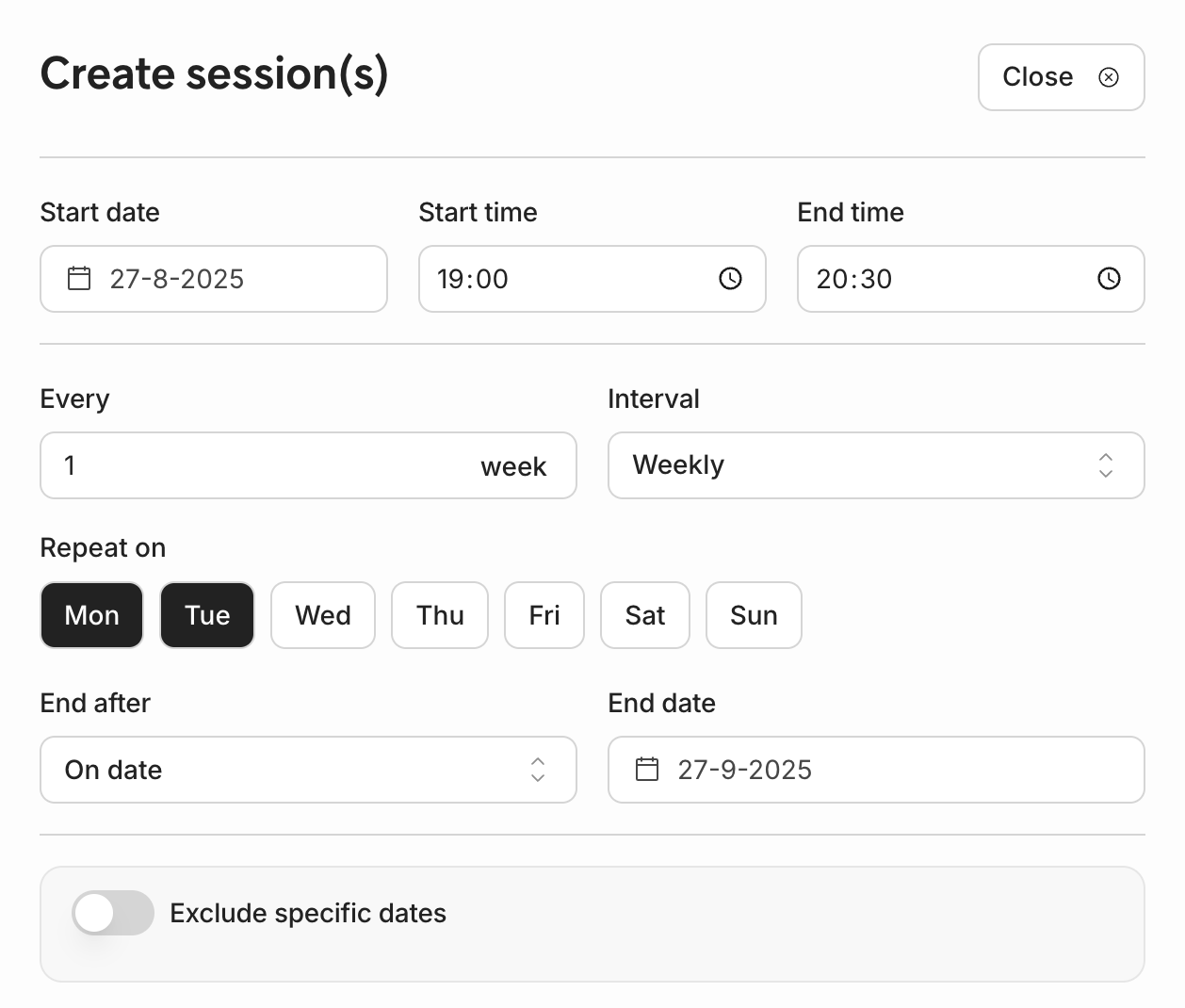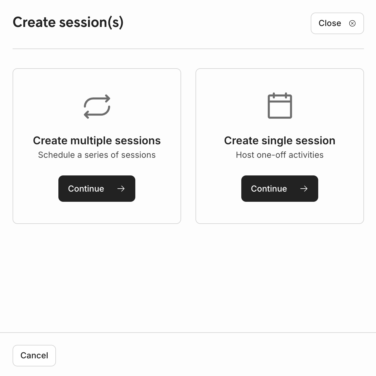 1. Select Add session and choose to Create multiple sessions if you have multiple dates for the event or Create single session if you have an event on 1 date.