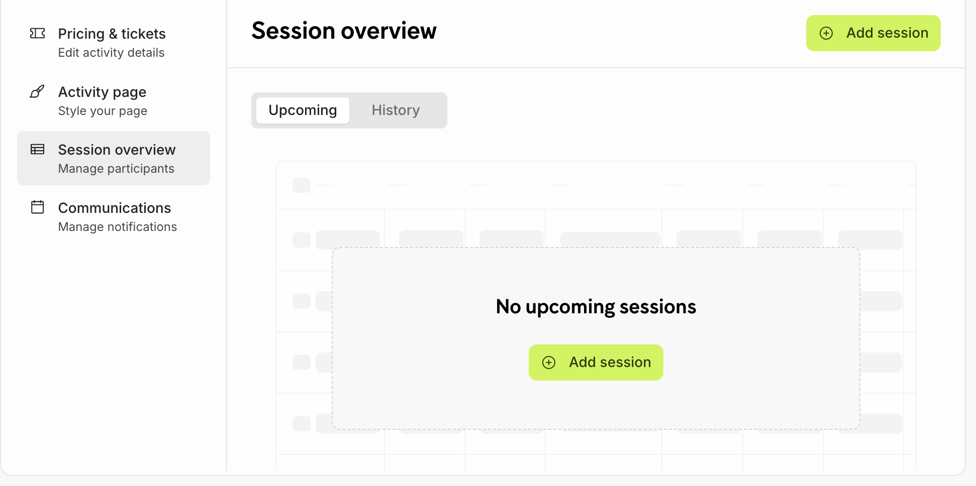 When all the above fields have been filled in, you can set up the event session. Save your progress and navigate to Session Overview on the left.
