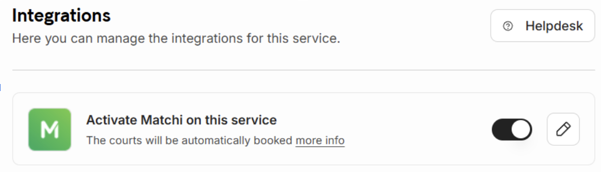 - If your venue works with MATCHi, you can activate and select your court preferences through our integrated software. First, you need to enable the MATCHi integration.